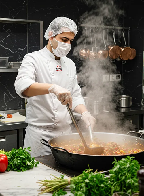 Standartlara uygun hijyen uygulamalarıyla güvenli yemek hizmeti.